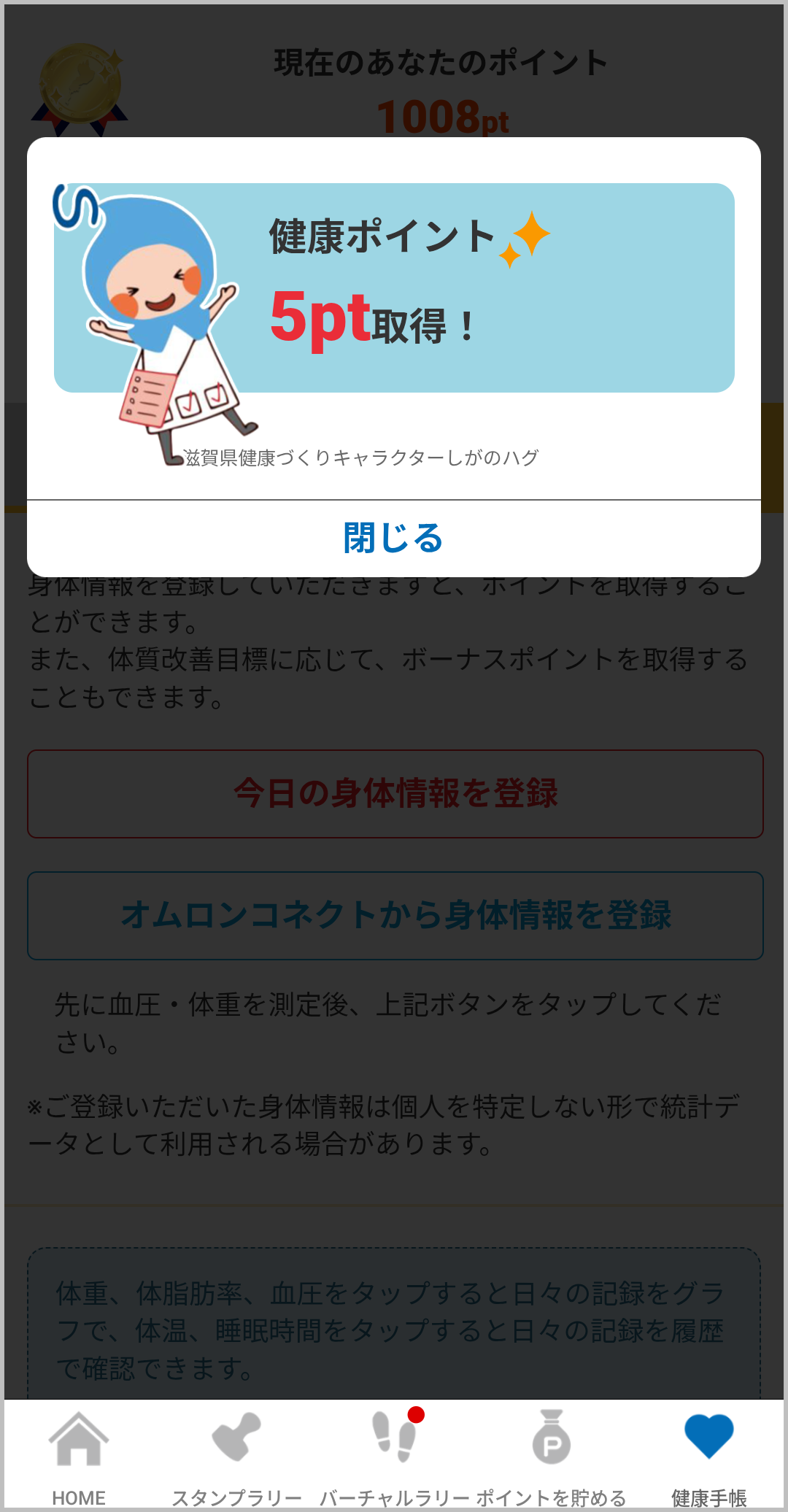 身体情報を登録してポイントをためる